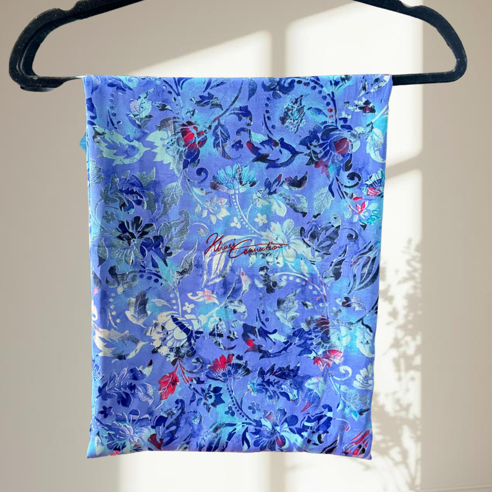 Drape yourself in this beautiful Aqua Blue Seamless Floral Jaiñsem, the traditional attire of the Khasi women of Meghalaya! The enchanting Jaiñsem of French crepe material is both stylish and comfortable as it embraces your silhouette!