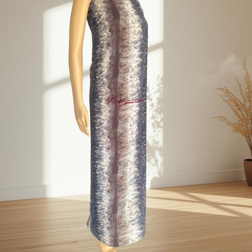 Floating Waves Jaiñsem with undulating lines or curves across the body of the Jaiñsem — evoking a sense of water, movement, calm yet dynamic. With the luxury crepe material and wave pattern, this version elevates the traditional form into a more contemporary, dress‐up version: perfect for festivals, special occasions, or elegant daytime gatherings.