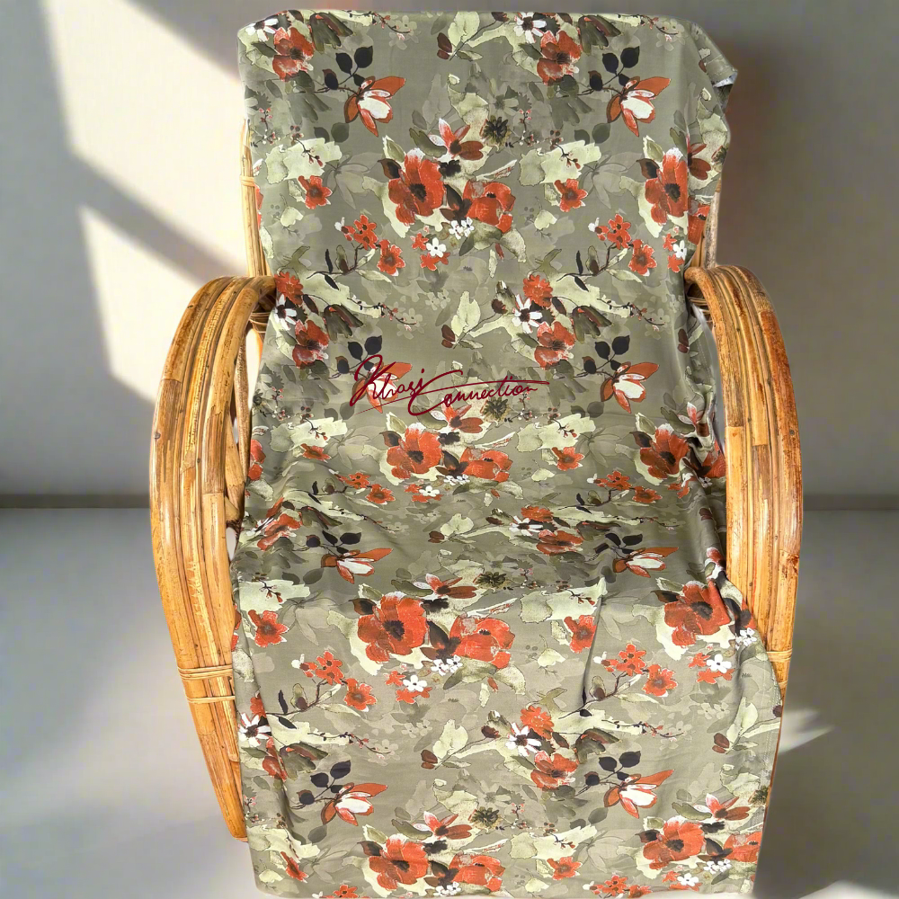 Soft and subtle floral abstract patterns flow across the fabric, inspired by the serene beauty of nature. The prints are thoughtfully placed to enhance the drape and silhouette of the traditional Jaiñsem. The Rust Brown Flower Jaiñsem celebrates the essence of Khasi culture while offering a versatile styling option for today’s generation. Whether you're attending a cultural event, wedding, or simply expressing your roots with pride, this piece speaks volumes.